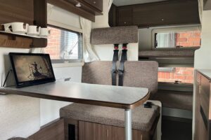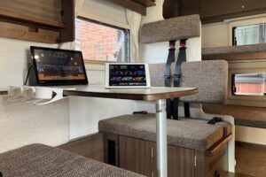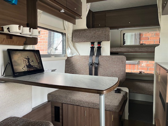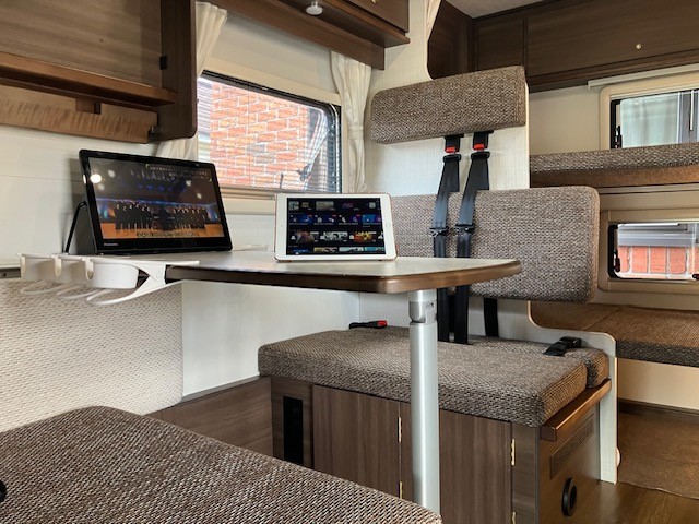 WiFiナビが搭載されているので移動時など動画等を見てお楽しみになれる様にしております。 電源装備は照明と冷蔵庫用サブバッテリー×1個と電子レンジと家電使用コンセント用ポータブルバッテリー1.536kWh×1台搭載、両バッテリー共に走行充電可能で電源の確保しており一般的な使用なら心配ありません。シェアルール