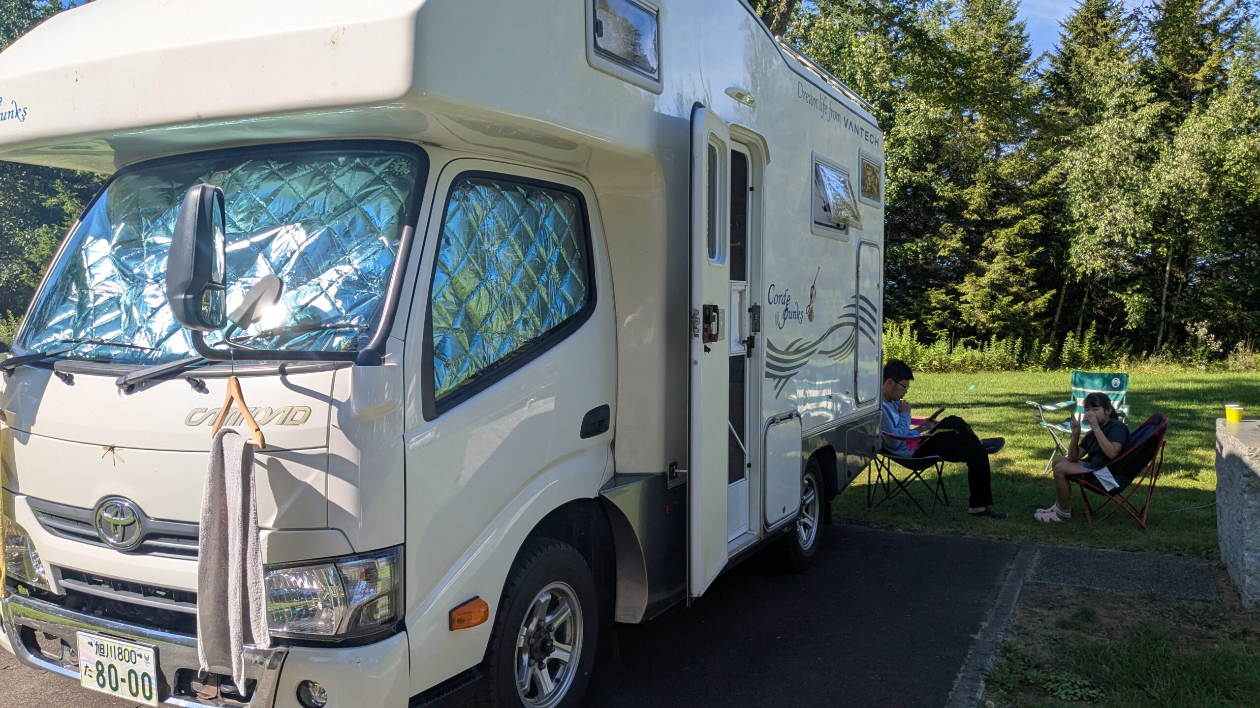 綺麗なキャンピングカーでした。車内には寝具、調理器具、テレビや冷蔵庫、電子レンジなどがあり、さらに人数分のキャンプ用品まで準備いただき大満足です。初めてのキャンピングカーでしたが、丁寧に運転のコツや車内装備を説明いただけて、とても快適な旅ができました。何より、旭川空港まで送迎をしてくださり大変助かりました。ありがとうございました!